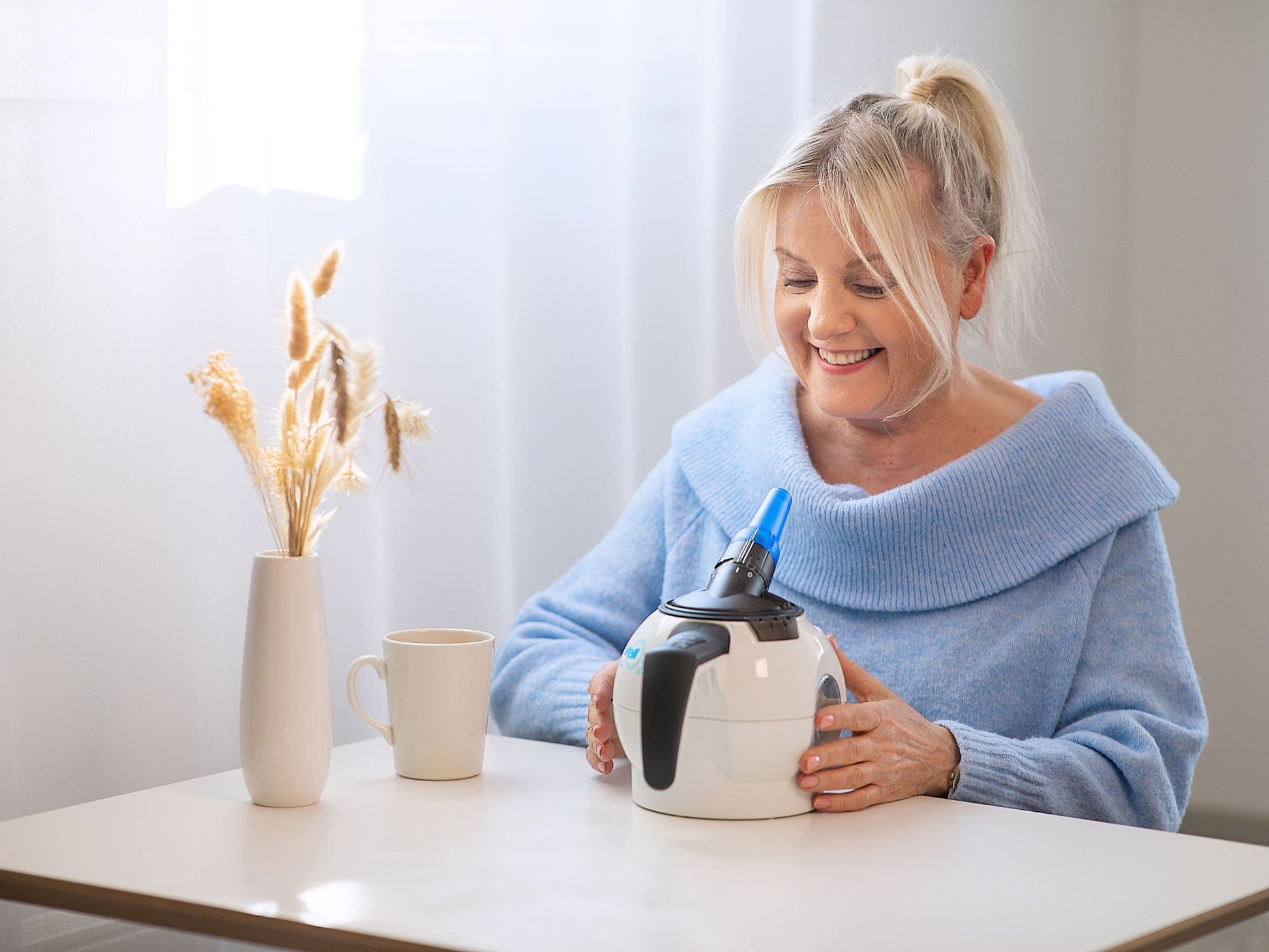 The WellO2 device has an adjustable breathing resistance, allowing both beginners and experienced breathing trainers to benefit from the training. Based on your preferences and needs, you can also choose the temperature of the warm steam from three temperature options.