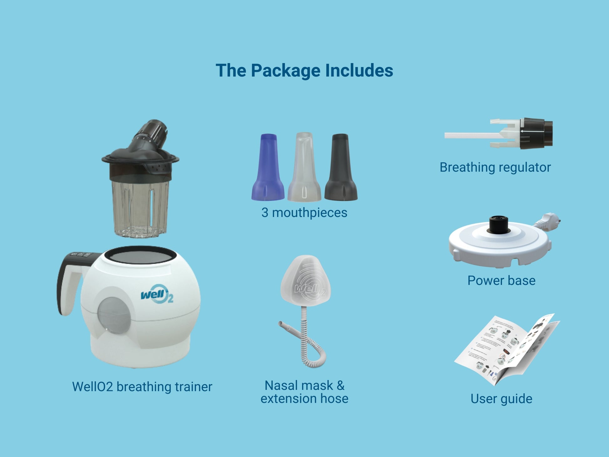 The comprehensive user guide included in the product package makes it easy to use and maintain the WellO2 device. With the device's own cleaning program and personal mouthpieces, multiple individuals can use the WellO2 device.